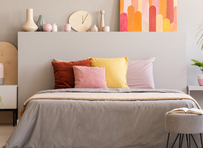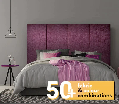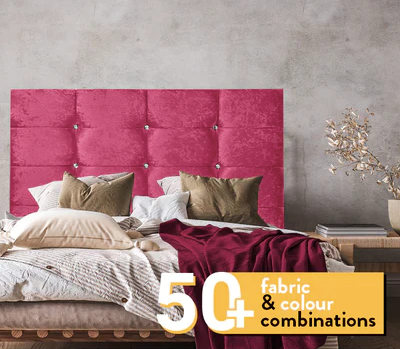 We offer 5 headboards fabrics including Chenille, Crush Velvet, Leather, Plush and Suede. Click on any of our products and you will be able to select from our extensive range of colours and shades across the different headboard materials to suit your interior design vision, from neutrals, to greys, to bright pinks and yellows but also more accent setting colours such as red, purple, green, teal or turquoise. Or browse all options using the filter function.